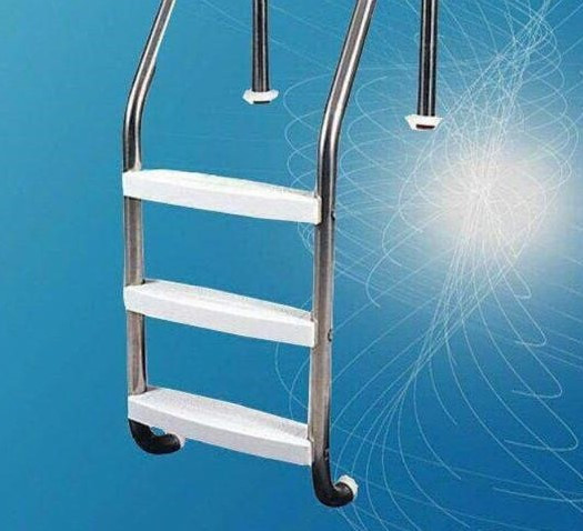 پله استخری از استیل ۳۰۴ تایوانی ساخته شده است که از کف پله پلاستیکی با تحمل بار ۲۰۰ کیلو برخوردار است